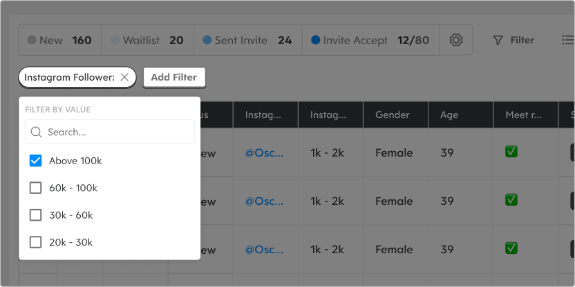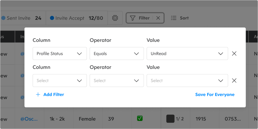 By building a sorting feature, we meet users' need to easily select influencers from highest to lowest followers without exporting to Google Sheets.